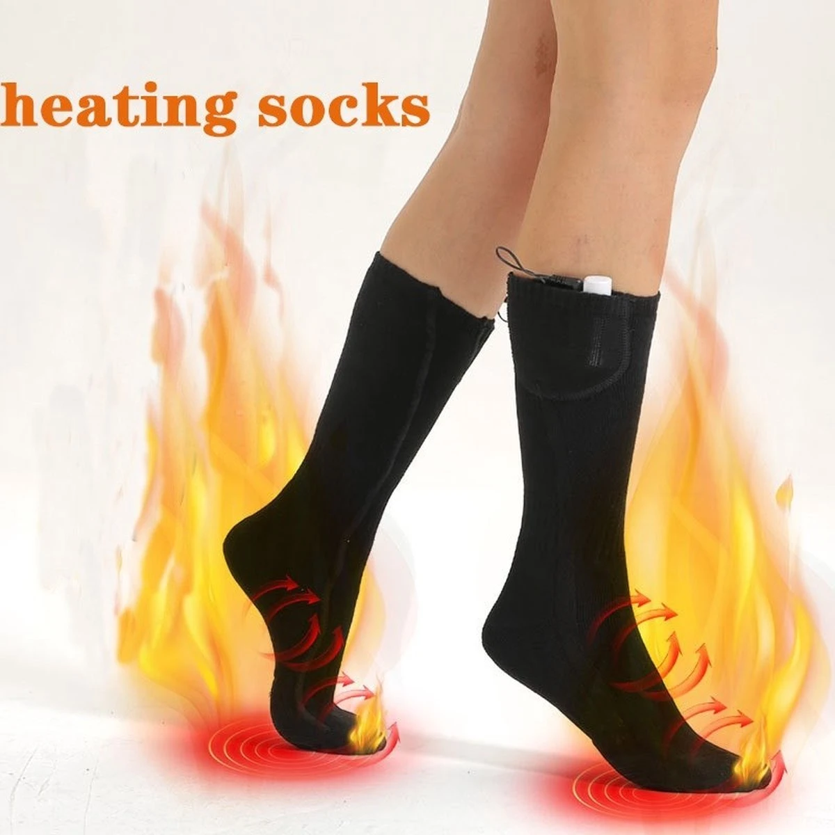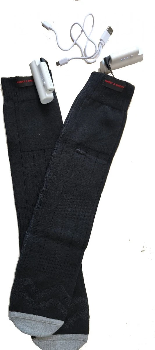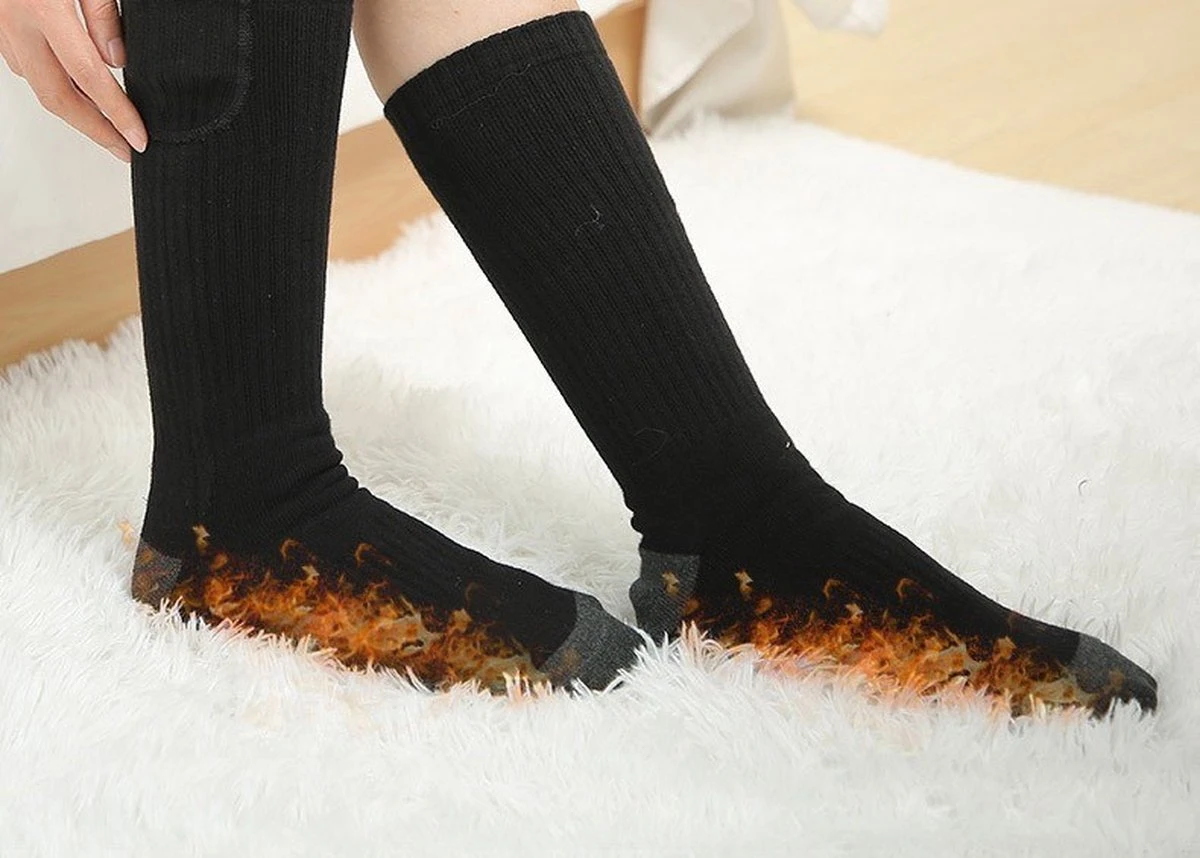 Dikke katoenen wintersokken met een speciaal compartiment waarin je een herlaadbare battery aansluit om tussen 2 en 4 uur warme voeten te houden.