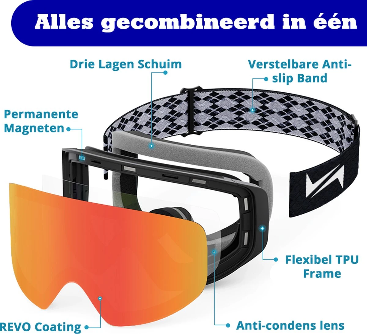 - Anti-fog coating, zodat je lens niet beslaat tijdens het wintersporten!